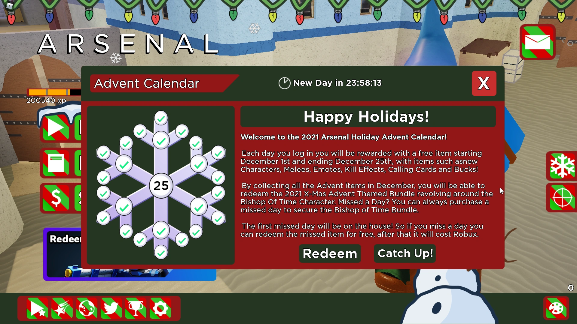 Arsenal Roblox Codes 2024 Calendar what comes in December 24th it didnt show a icon this is the only : 22nd January 2024: We checked for new Taxi Boss codes. Taxi Boss is a Roblox management and driving game where you’ll start out as a newcomer taxi driver and work your way up the ranks by . Sonar Studios has released several codes that you can use to get some special items to help you on your journey. Here is the list of all valid codes in Creature of Sonaria: Gabriela has been a .