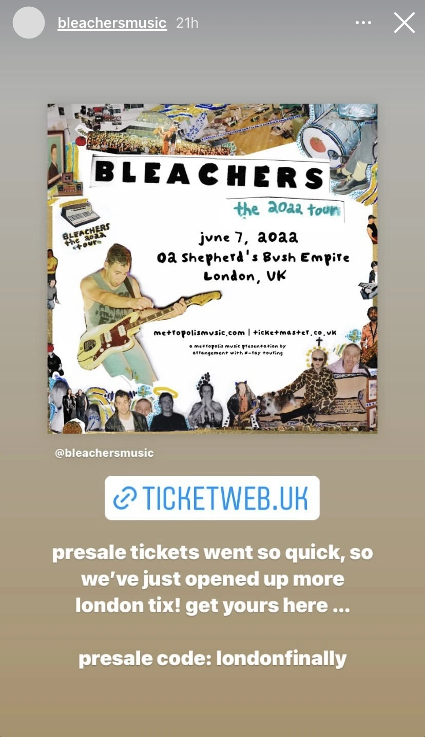 bleachers on X: “we’re coming to london! been almost 5 years since