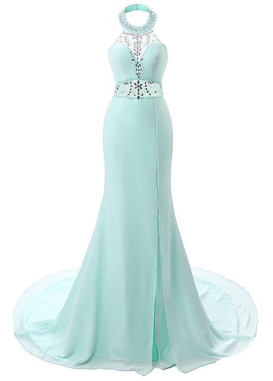 Glamorous Chiffon & Tulle Halter Neckline Mermaid Evening Dresses